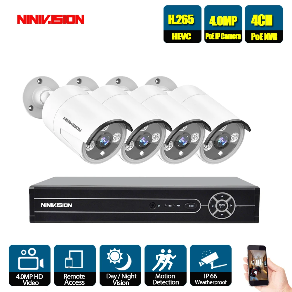 Review Top H.265 5MP CCTV System POE NVR kit 4ch 4MP waterproof POE IP camera bullet Home Security camera syst