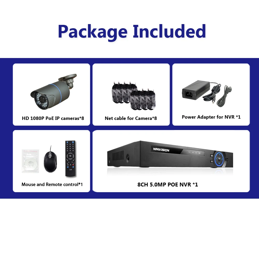 8CH 4.0MP CCTV Camera System Audio Record 2MP Bullet PoE IP Camera Waterproof Outdoor Night Vision