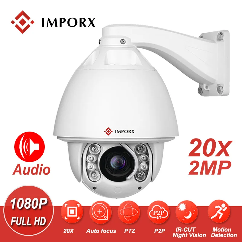 IMPORX CCTV Auto Tracking IP PTZ Camera High Speed Dome 2MP PTZ IP Camera 1080P 20X P2P IR Motion D