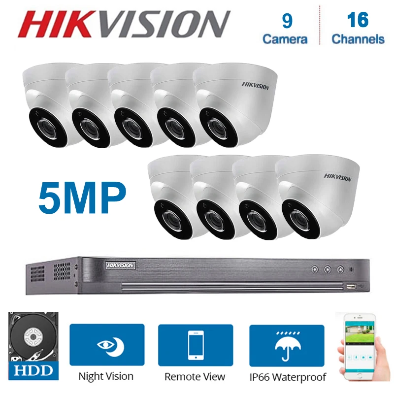 Hikvision 16Channels DVR Video Surveillance with 9PCS 5MP Dome Camera Security Night Vision CCTV Se