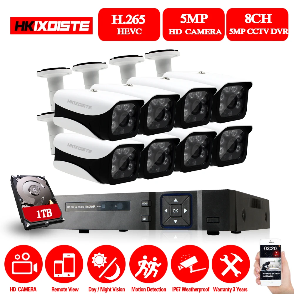 BEST QUALITY HKIXDISTE 5.0MP CCTV Camera System 5MP CCTV Surveillance Kit 8CH DVR 1944P Video Output Kit Securit