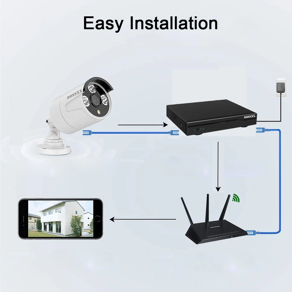 Hot Sale OOSSXX 5MP POE Security Camera System Kit 6pcs 5.0MP IP Camera IR Cut Outdoor Indoor IP67 Waterproo