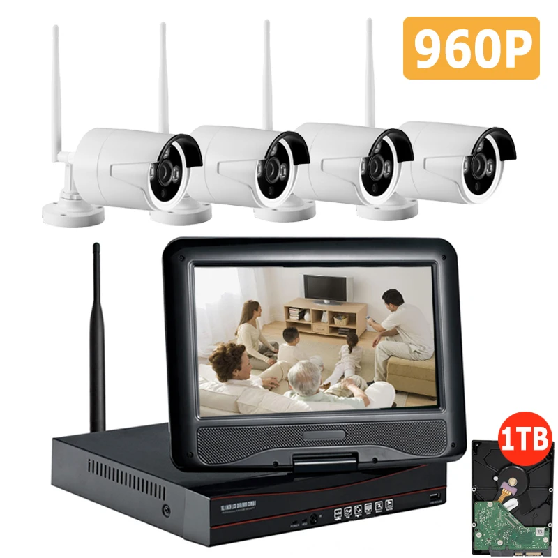 4CH CCTV System Wireless 960P NVR Set 4PCS 1.3MP IR Outdoor P2P Wifi IP CCTV Security Camera Record