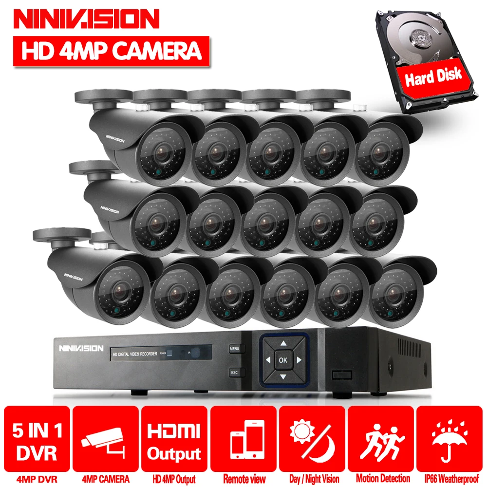 BEST 16CH HD 4MP AHD DVR recorder 3G Wifi CCTV system 16Pcs Super 4MP 2560x1440p security in/outdoor Cam