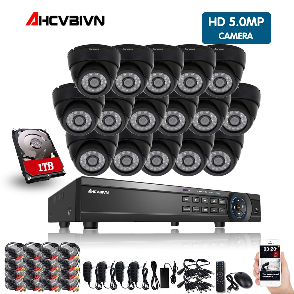 5MP 16CH Security AHD DVR CCTV System 5.0MP indoor outdoor Surveillance IR Night Vision AHD Dome Bl