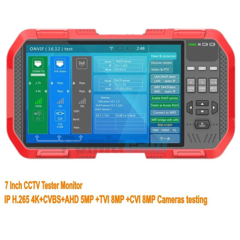 7 Inch WIFI CCTV Tester Monitor H.265 4K IP TVI CVI AHD Analog Camera Tester Monitor with POE ONVIF