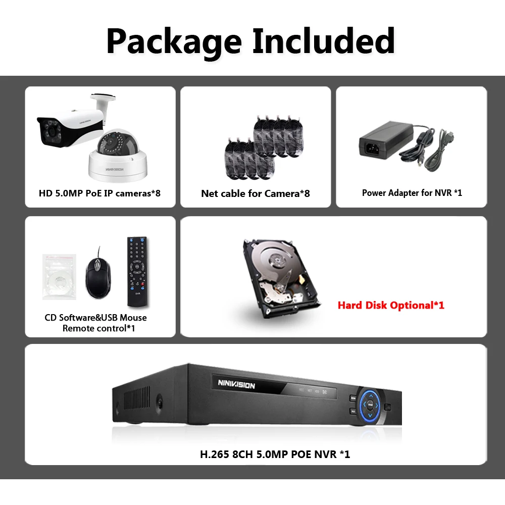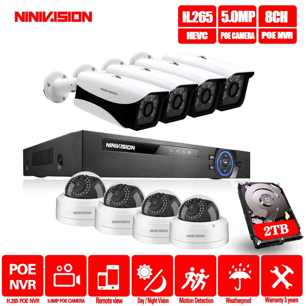 8CH 4MP/5MP POE Kit H.265 CCTV Security Up to 16ch NVR Outdoor Waterproof IP Camera P2P Surveillanc