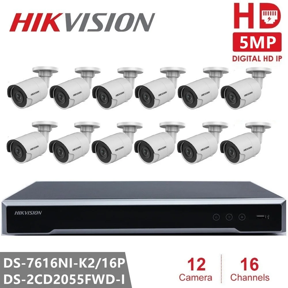 ORIGINAL Hikvision CCTV Camera Kits 16CH 16POE NVR + Security Camera DS-2CD2055FWD-I 5MP IP Camera Ultra-Low