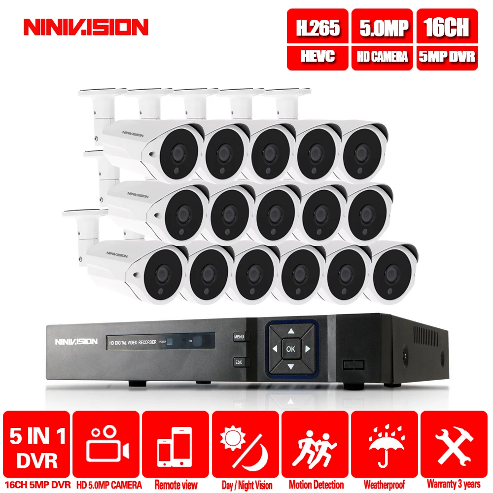 TOP NINIVISION H.265 16CH 2MP 5MP AHD NVR CCTV Security System 16PCS IR Outdoor 5.0MP Security Camera P