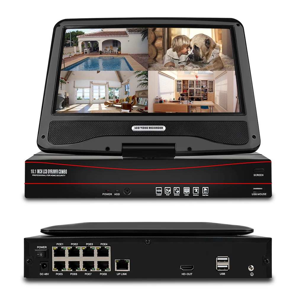 Techage 8CH 1080P POE CCTV IP Camera System 2MP HD 10.1 Inch LCD Monitor NVR Security Waterproof Su
