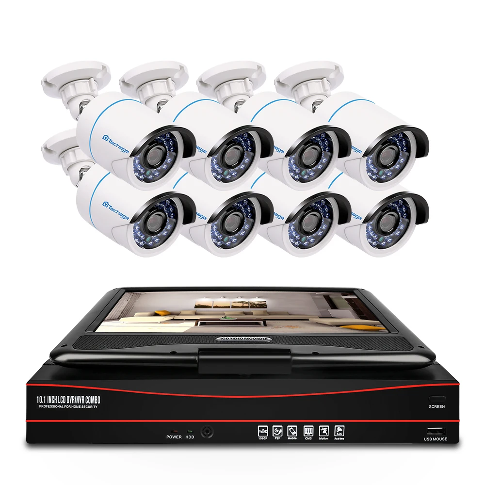 BEST QUALITY Techage 8CH 1080P POE CCTV IP Camera System 2MP HD 10.1 Inch LCD Monitor NVR Security Waterproof Su