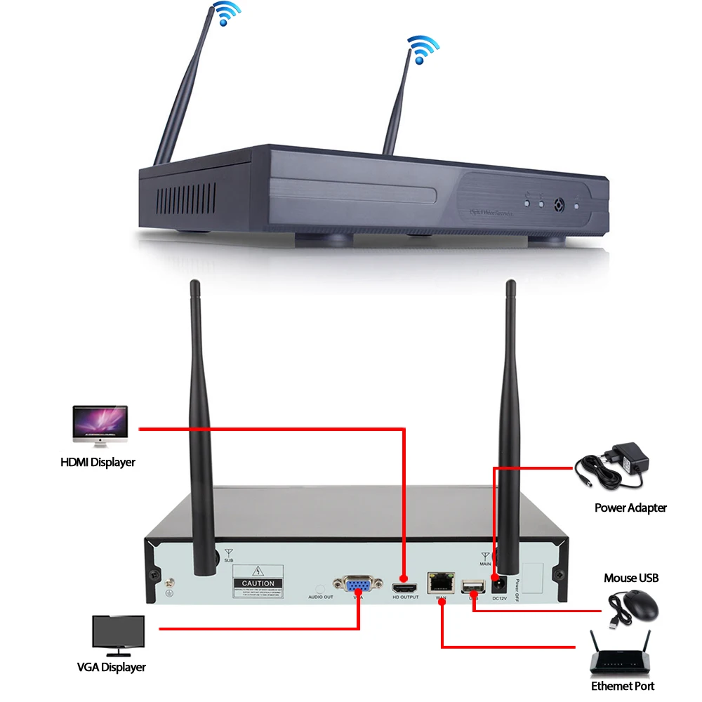 AHCVBIVN WIFI NVR System Plug&Play 1080P HDMI 4CH 2.0MP NVR KIT super Wireless signal P2P WIFI IP C