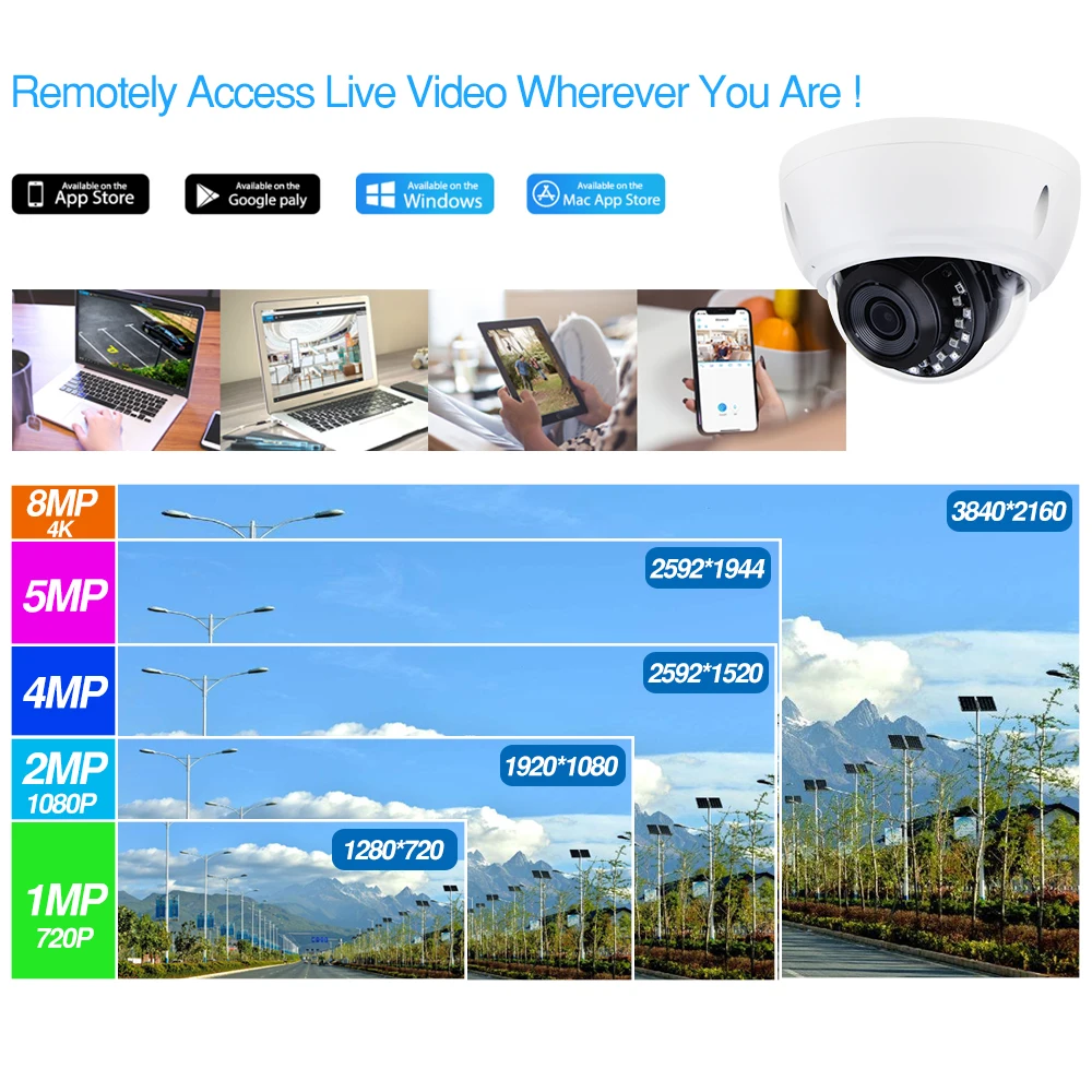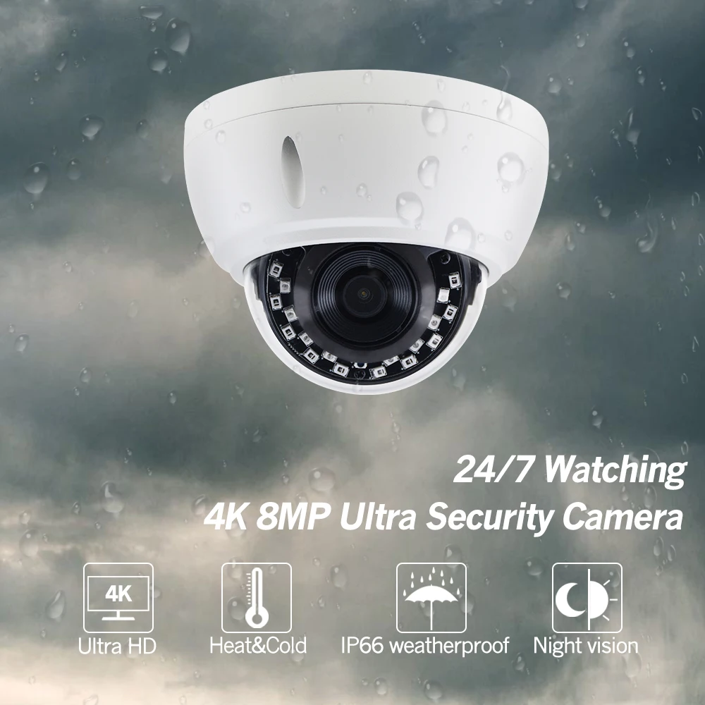 4CH CCTV System 2PCS Ultra 8MP Dome Security POE Camera IK10 with Hikvision 4POE NVR DS-7604NI-K1/4