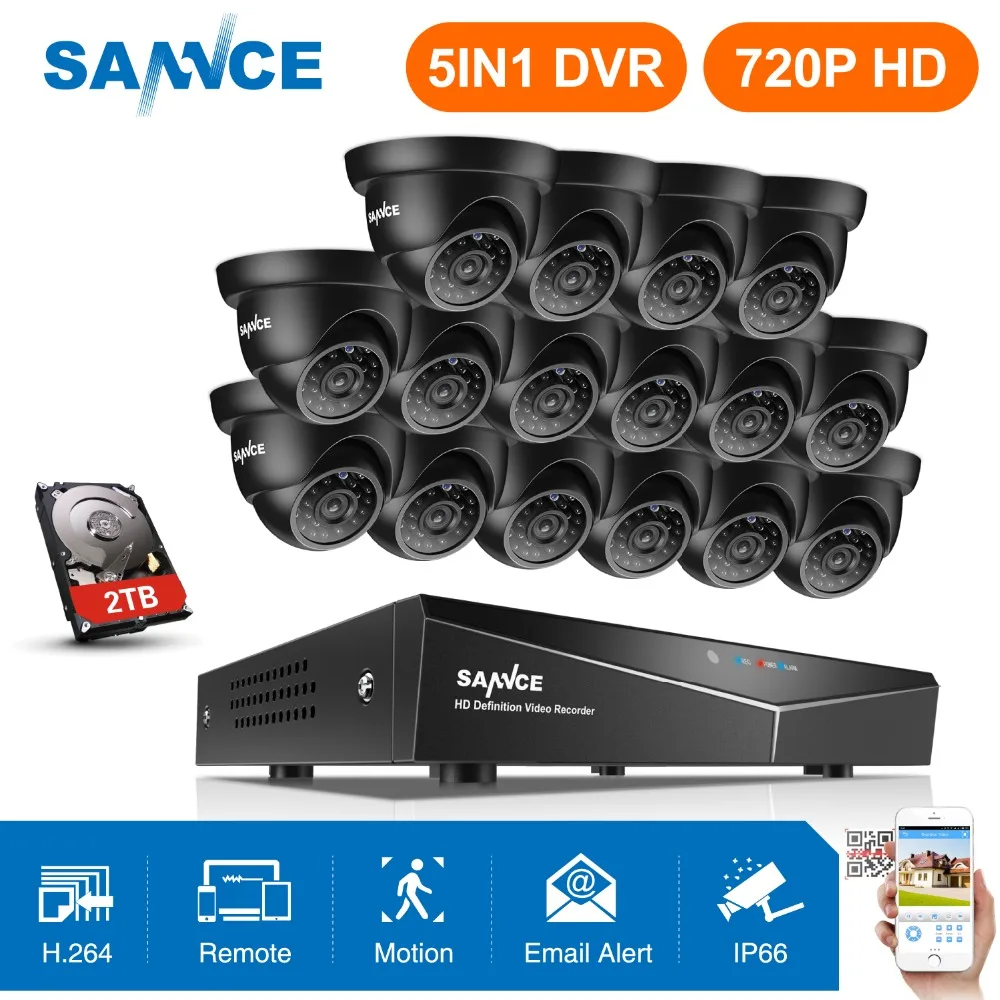 HIGH QUALITY SANNCE 720P 16CH HD 1080N 5-in-1 DVR CCTV Security System 16PCS 1280*720P IR IP66 Outdoor Cameras 1
