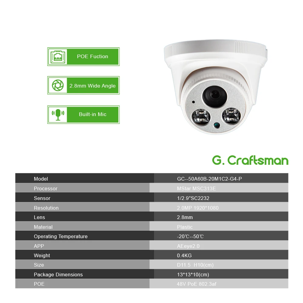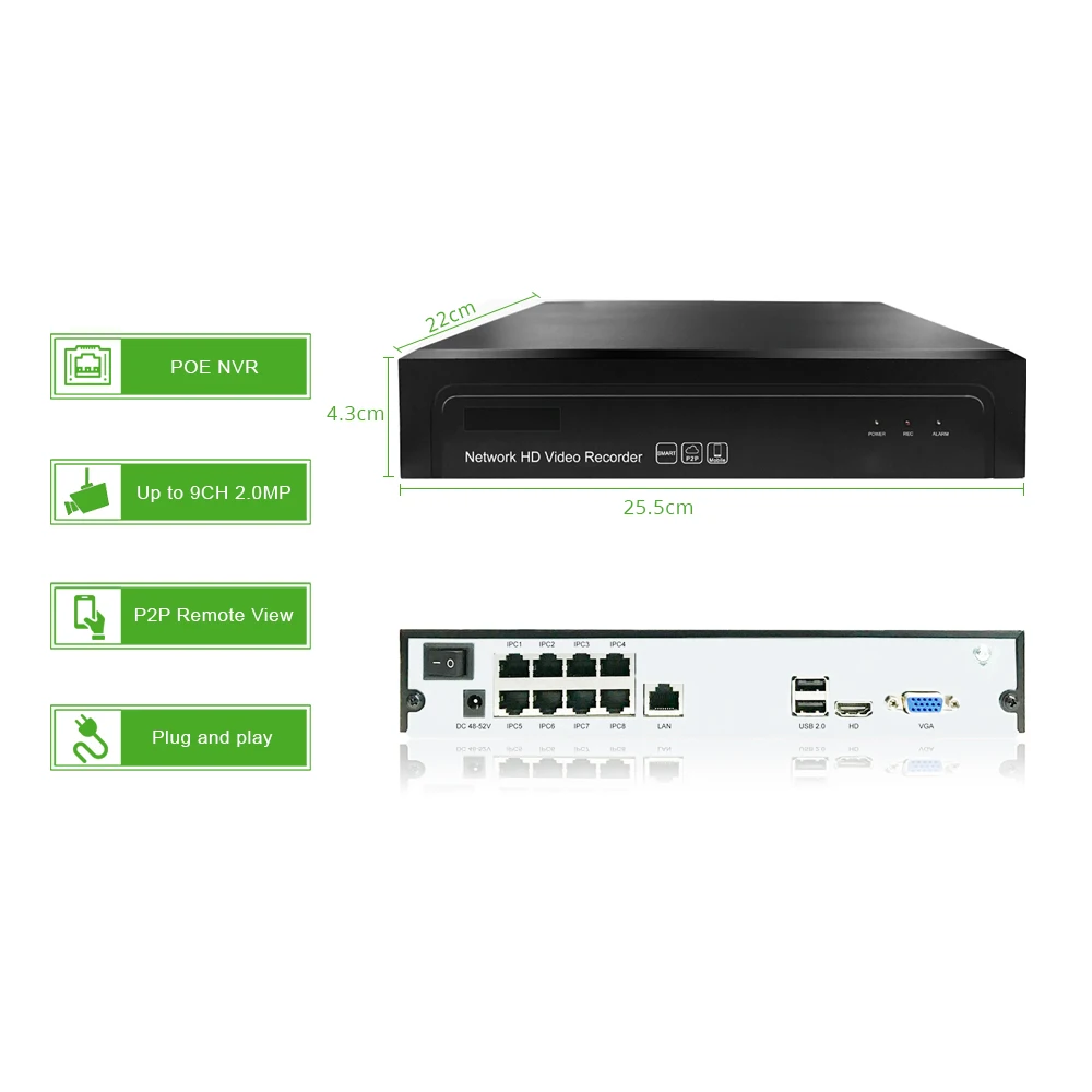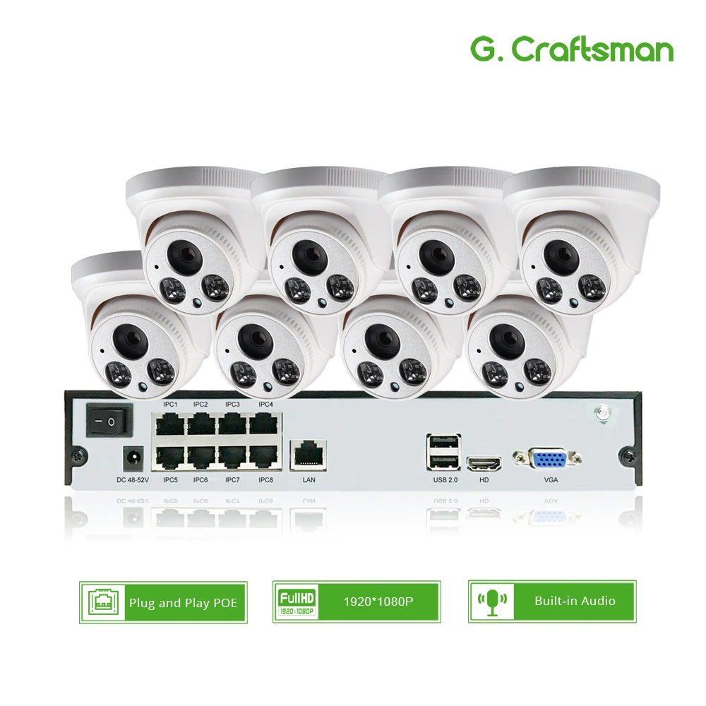 8ch 1080P POE Audio Kit H.265 System CCTV Security Full-HD NVR 2MP Indoor IP Camera Built-in Mic Su
